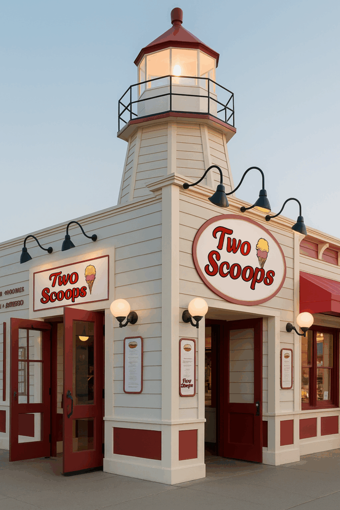 Owned by one of the many Patterson descendants—an original Swan Harbor family—Two Scoops carries more than just the taste of summer. Henry Patterson, the same man who built the first lighthouse in 1717, lit a beacon that guided sailors safely home. That original light is preserved today, and like the lighthouse itself, the shop has become part of the town’s lore.